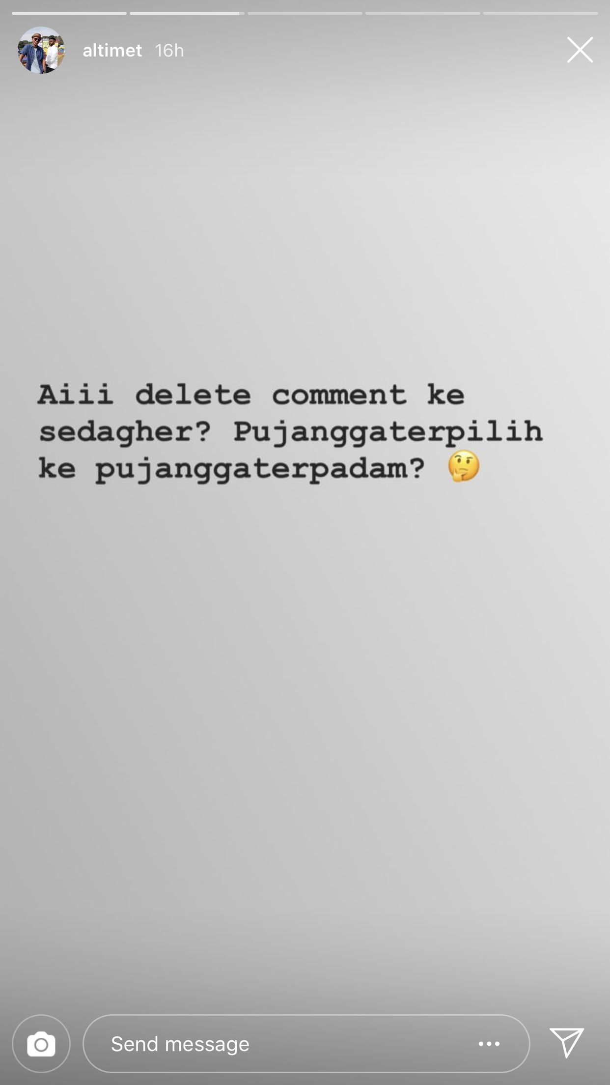 “Aii delete komen ke sedagher? Pujanggaterpilih ke pujanggaterpadam?” tulisnya.