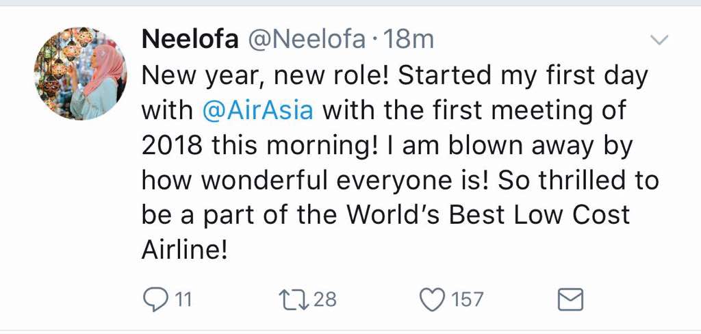 Penglibatan Neelofa dalam kumpulan tersebut selaras dengan pengumuman Ketua Pegawai Eksekuti Kumpulan AirAsia, Tan Sri Tony Fenandes pada 8 Disember 2017 lalu.