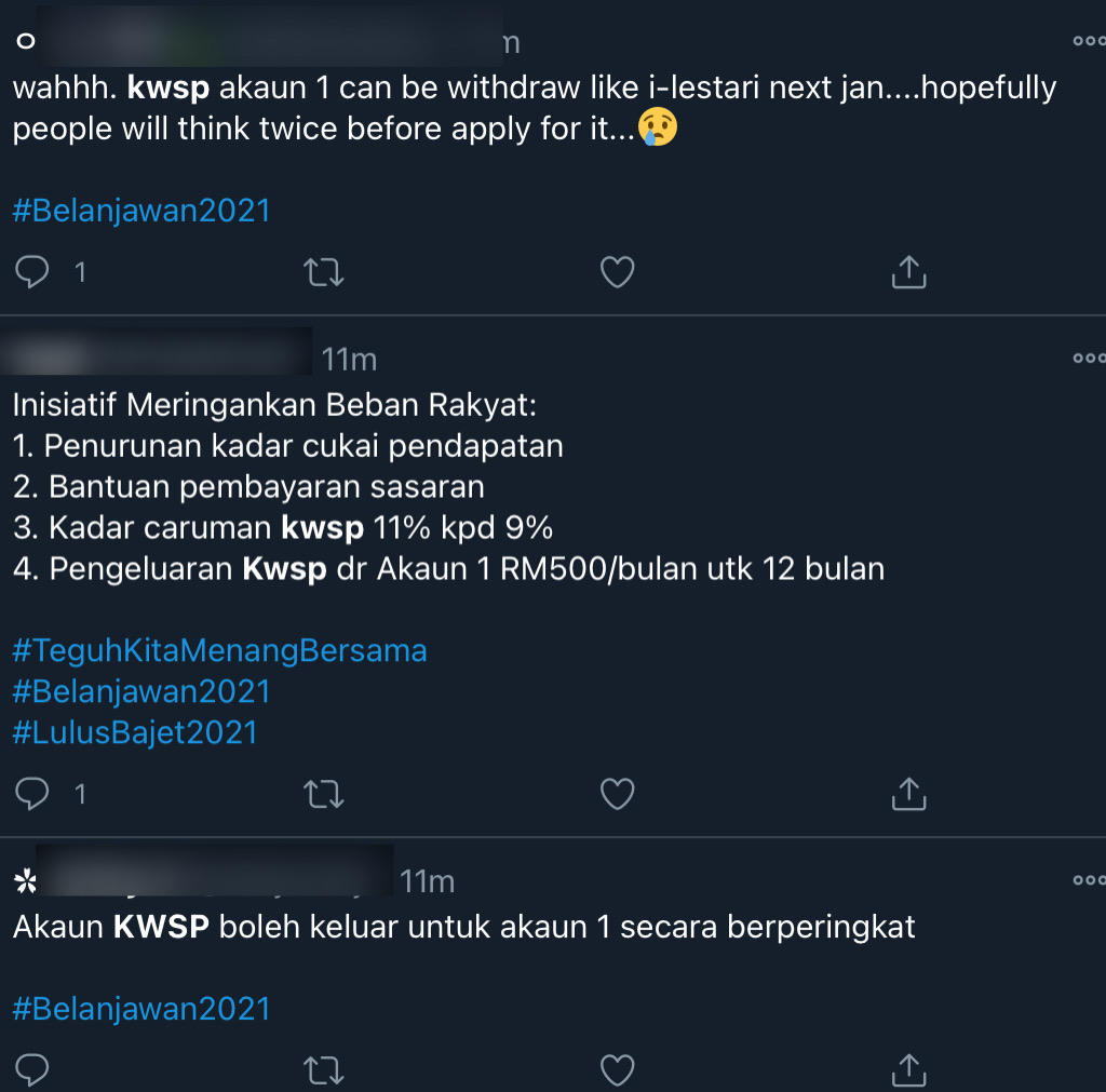 Kerajaan akhirnya membenarkan pengeluaran akaun 1 Kumpulan Wang Simpanan Pekerja (KWSP) menerusi pembentangan Belanjawan 2021 sebentar tadi.