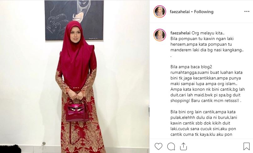 Dalam pada itu, menerusi ruangan komen rata-rata pengikutnya bersetuju dengan teguran yang diberikan Faezah.
