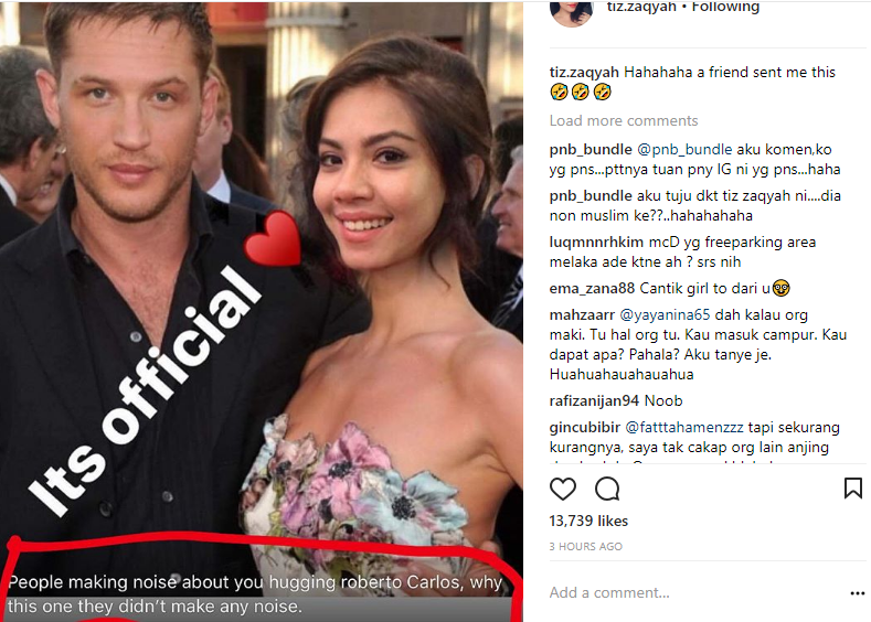 Bagaimanapun disebabkan ruangan komen foto berpelukan yang dimuat naik oleh Tiz itu telah ditutup menyebabkan netizen beralih untuk ‘menyerang’ IG bekas pemain bola sepak berkenaan.