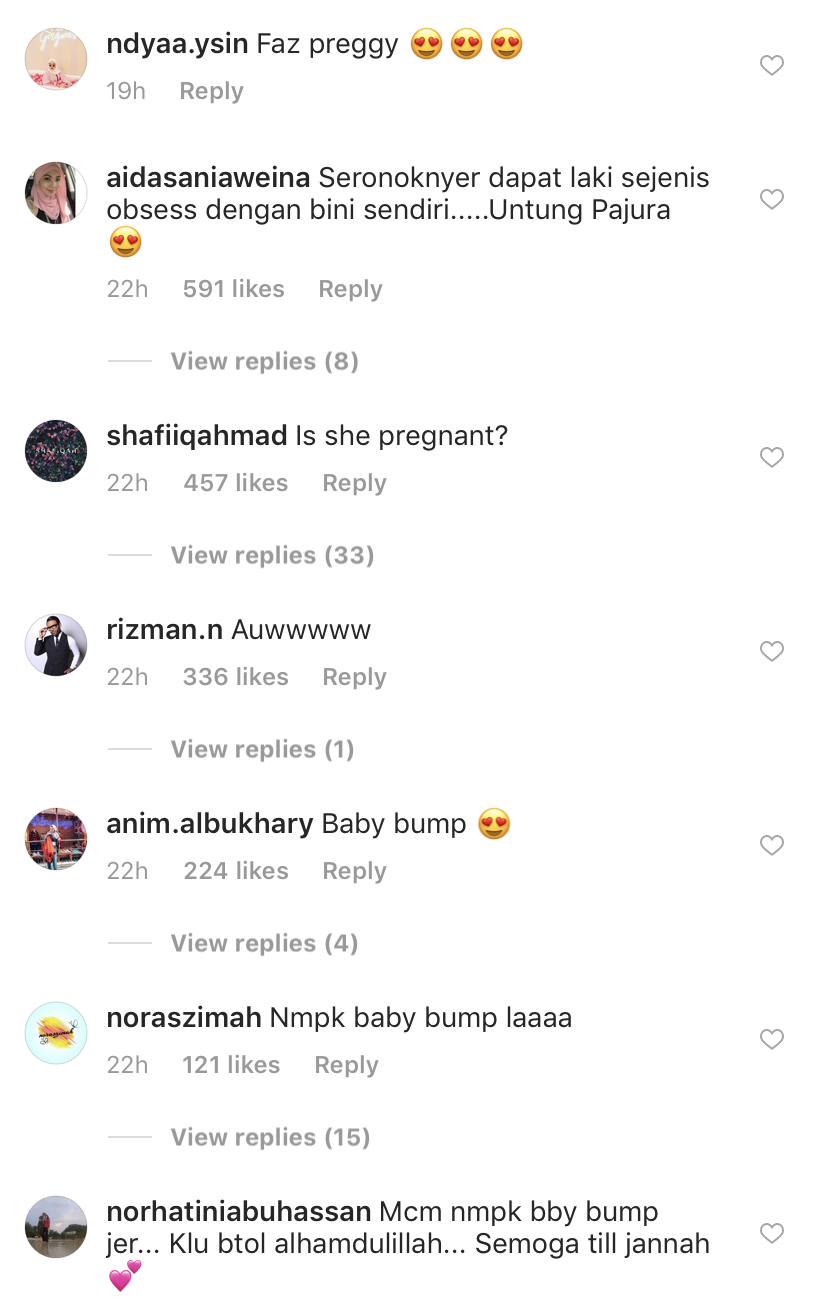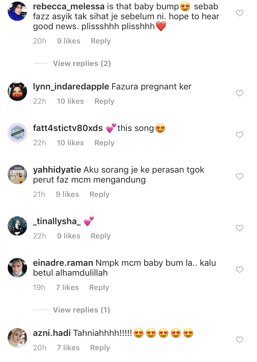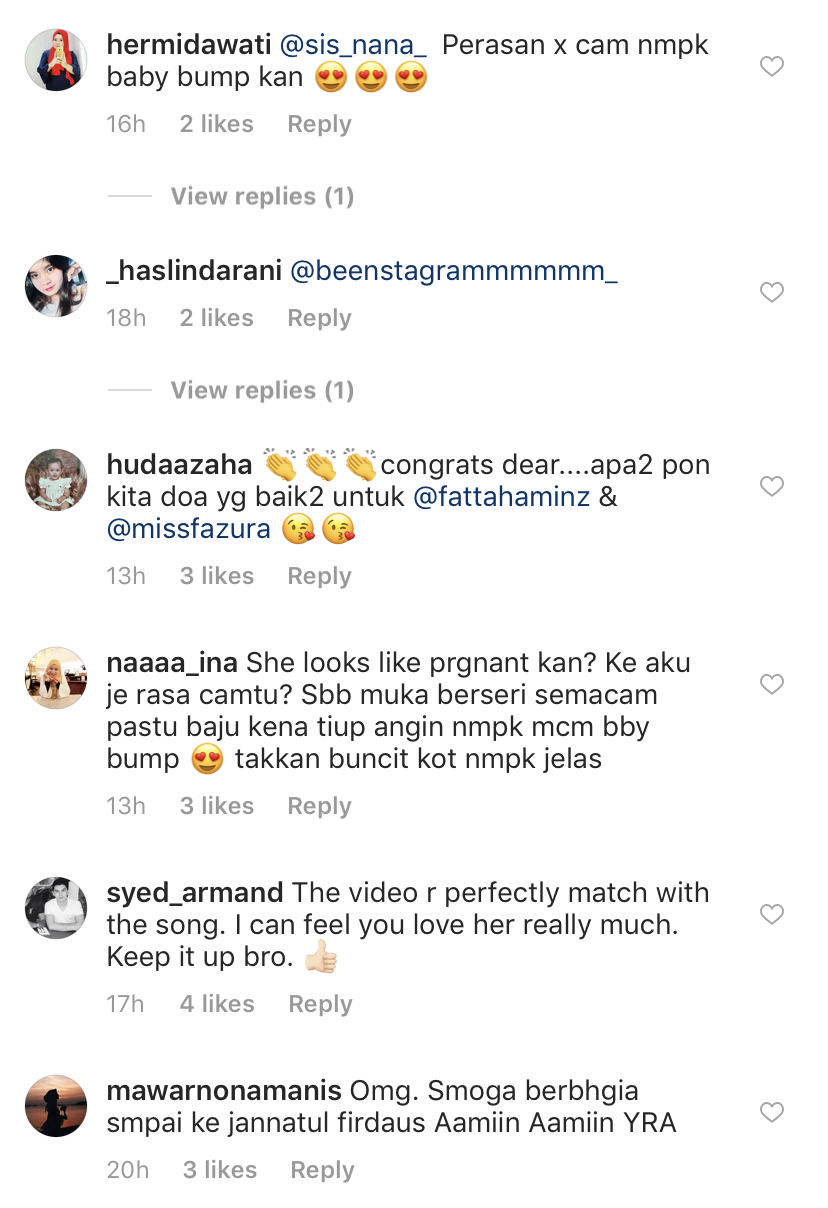 Menjengah di ruangan komen, rata-rata pengikut Fattah cuba meneka yang Fazura telah hamil apabila kelihatan 'baby bump' di dalam video tersebut.