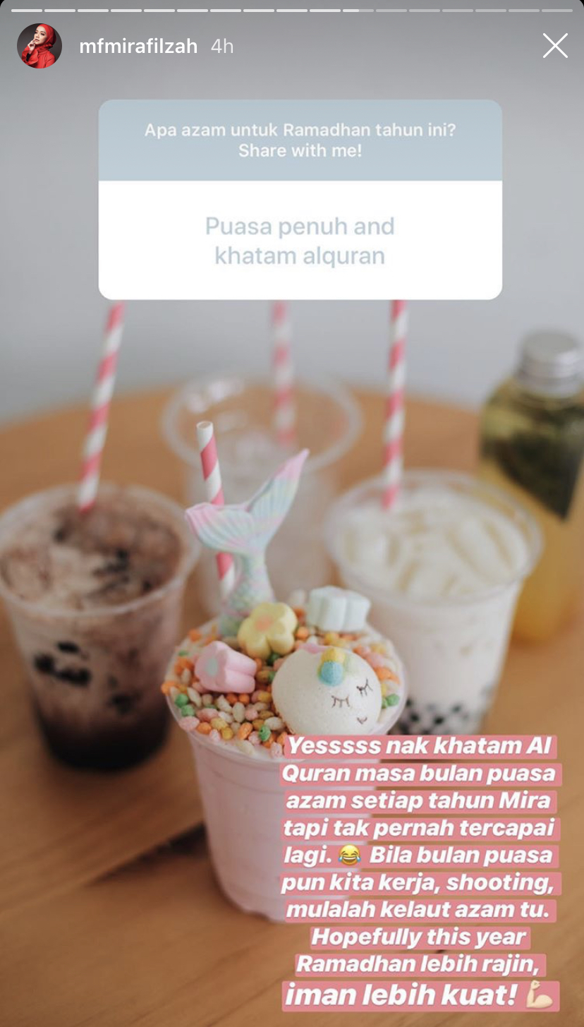 Namun begitu, menerusi ruangan Instagram Stories Mira akui akibat sibuk bekerja azamnya itu tidak berjaya ditunaikan.
