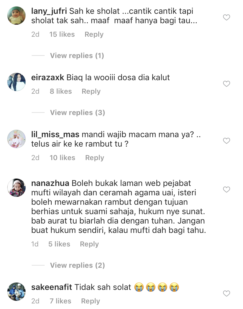 Namun, warna rambut tersebut menjadi perhatian netizen yang mempunyai perasaan syak wasangka untuk dibawa semasa bersolat.