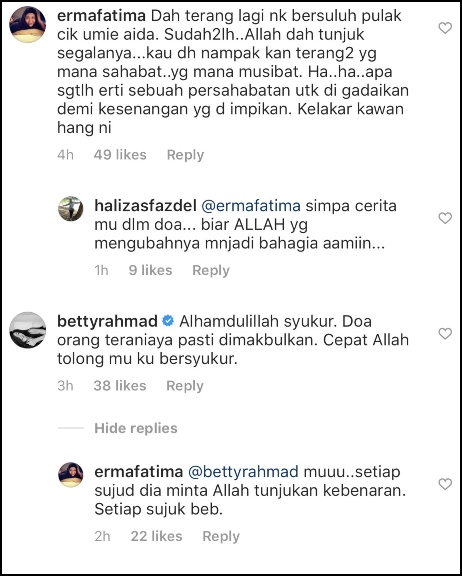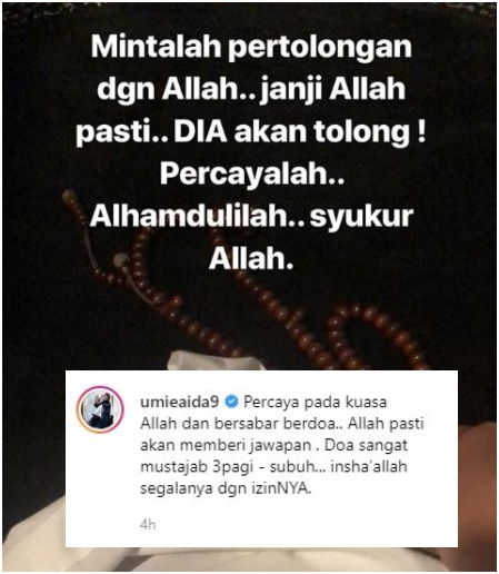 Awal minggu lalu, pelakon Datin Seri Umie Aida membuat luahan perasaan di laman Instagram IG)nya selepas dikhianati sahabat baik sendiri.