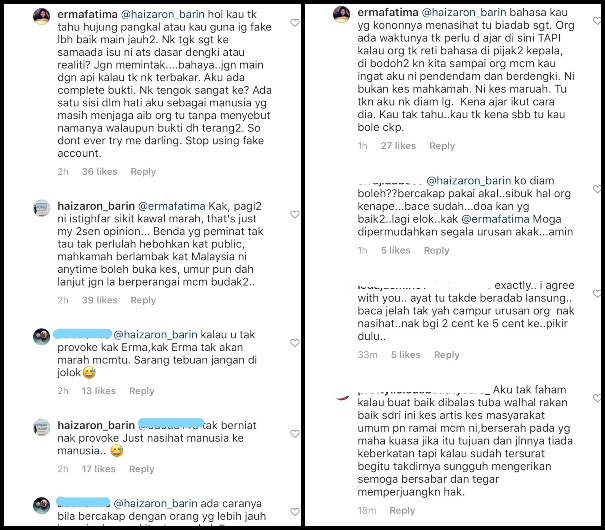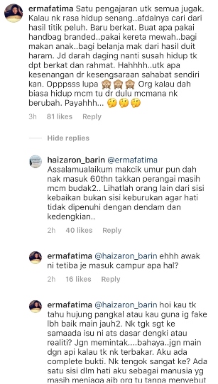 Mereka menganggap komen ditinggalkan @haizaron_barin itu sebagai kurang sopan dan berkemungkinan menggunakan akaun palsu.