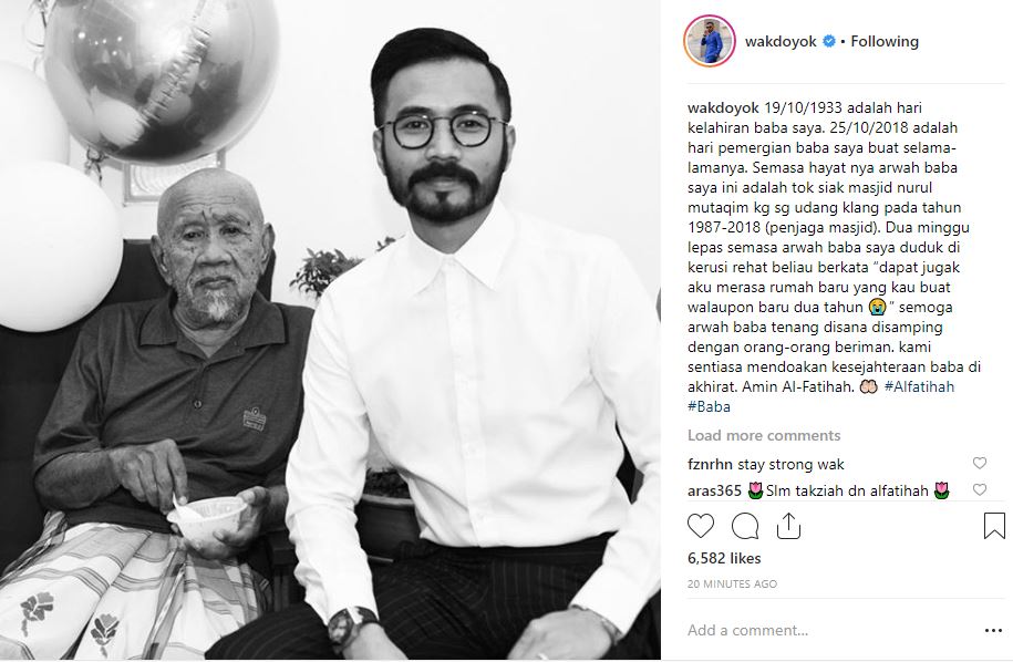 Dalam pada itu menerusi ruangan komen, rata-rata pengikutnya turut mengucapkan takziah kepada Wak Doyok.