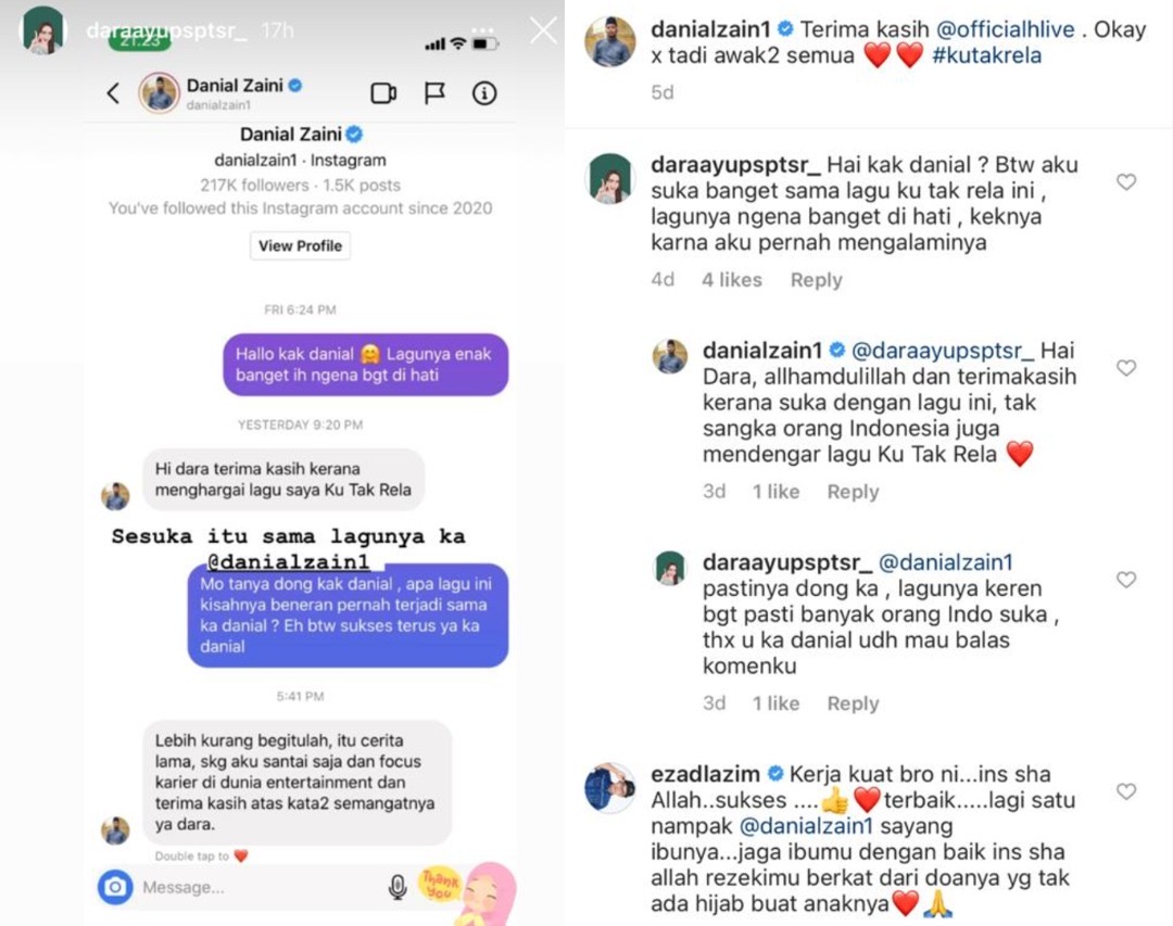 “Liriknya sangat terkesan di hati, malah saya makin terasa sayu apabila pernah melalui situasi sama," tulis Dara di Instagram (IG) Danial.