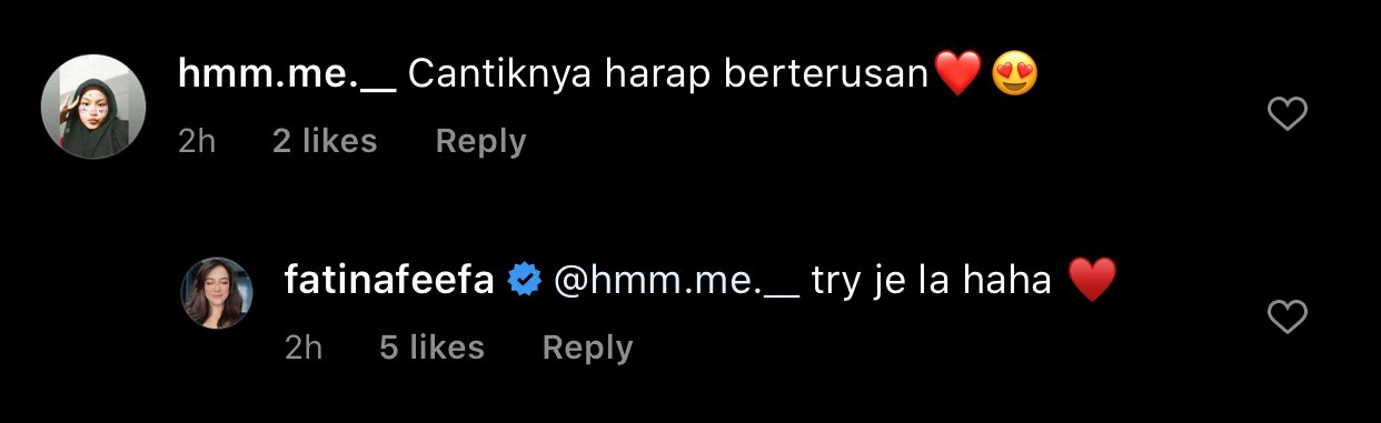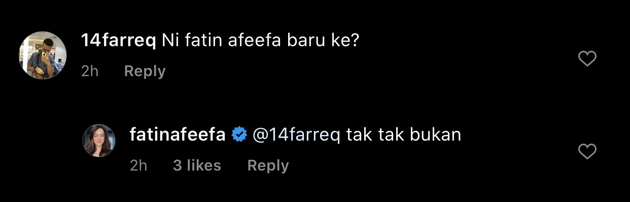 Bagaimanapun menerusi ruangan komen, Fatin turut membalas komen-komen peminatnya.