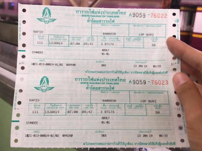 Jika dari Bangkok, anda boleh memilih menaiki kereta api. Saya tiba di stesen kereta api Hua Lamphong pada jam 6.30 pagi. Tiba di stesen kereta, saya bergegas ke kaunter tiket dan membeli tiket kereta api ke Lopburi jam 7 pagi dengan harga 50 Baht (RM6.90).