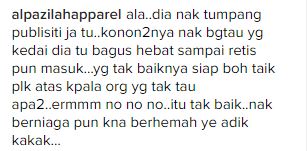 Dalam pada itu, rata-rata pengikut IG aktres itu tidak bersetuju dengan dakwaan itu dan menyifatkan wanita tersebut hanya ingatkan publisiti murahan untuk melariskan perniagaanya.