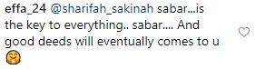 Menerusi ruangan komen, rata-rata peminatnya bersetuju dengan tindakan Sakinah itu.