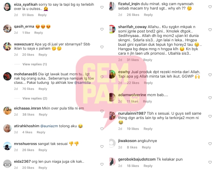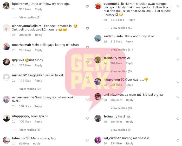 Beberapa pengikut IG telah mengecam tindakan mereka yang dianggap tidak manis dilakukan oleh seorang wanita yang berstatus isteri dan ibu.