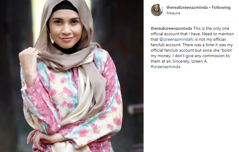 Terdahulu, terdapat akaun palsu menggunakan nama, @therealizreenazminda sejak 5 Mac lalu.