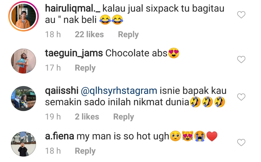 “Chocolate abs” tulis seorang daripada netizen wanita.