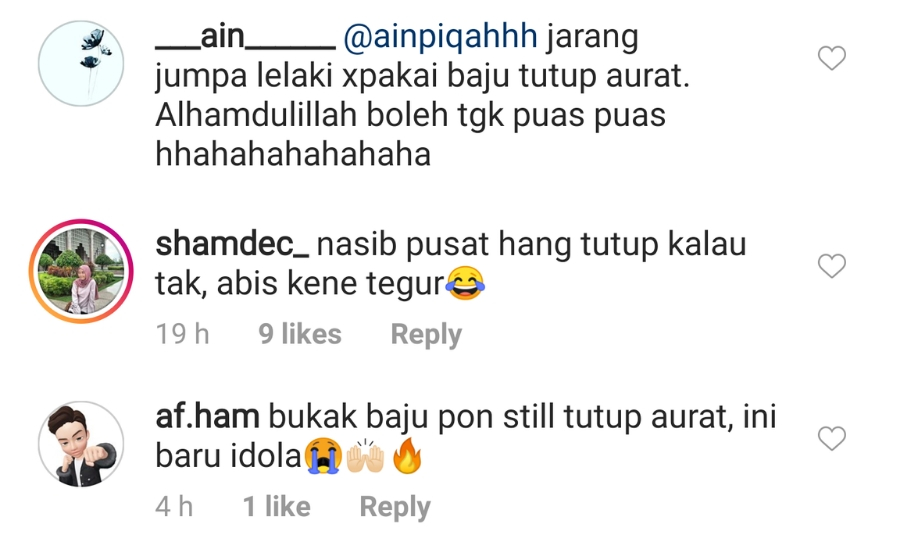 “Tabik mael still jaga your aurat!! Good job,” kata peminatnya.