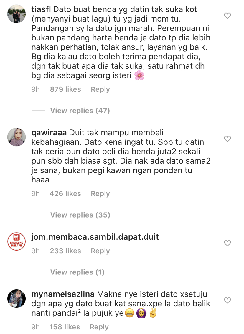 Malah terdapat segelintir netizen berpendapat duit bukan segalanya bagi seorang wanita.
