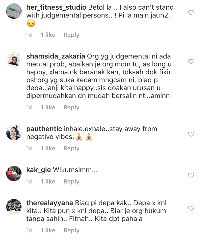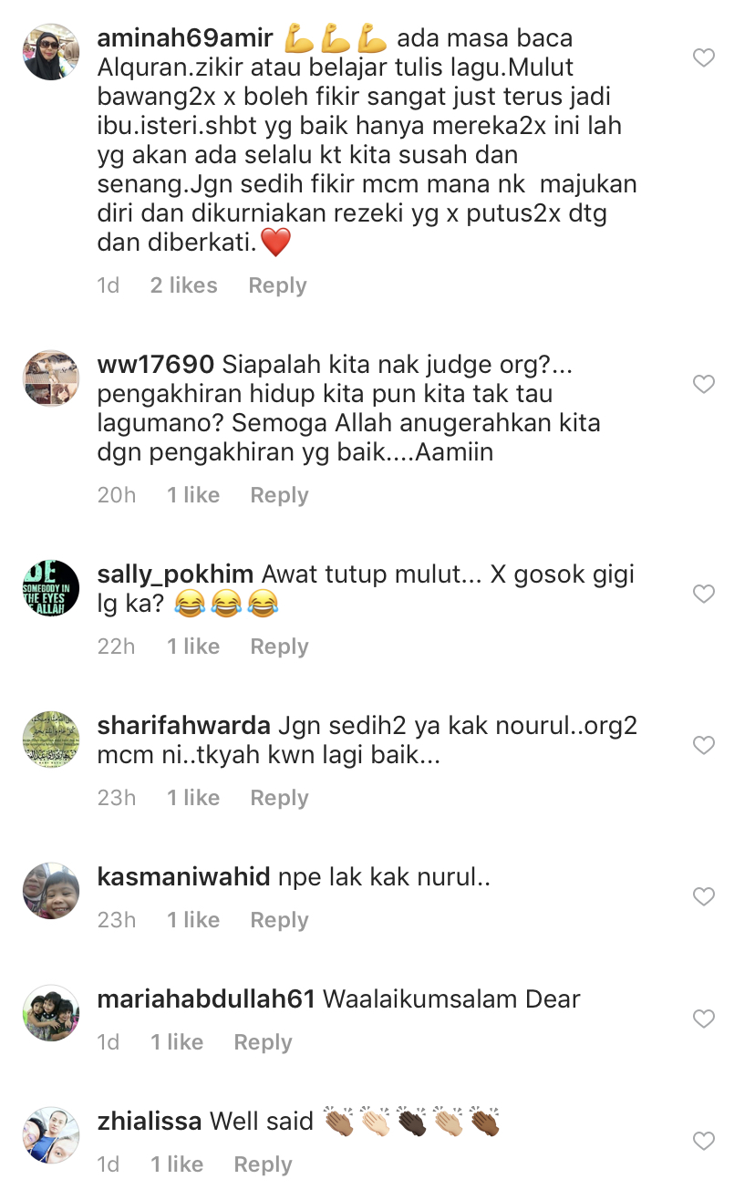 "So dengar dan lihat yang baik-baik saja. Kalau takdak yang baik, tu yang suka dok judge orang," tulis Nourul.