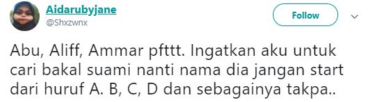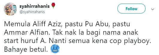 Tinjauan di media sosial mendapati netizen seolah-olah memerli perangai lelaki yang namanya bermula dengan huruf berkenaan.