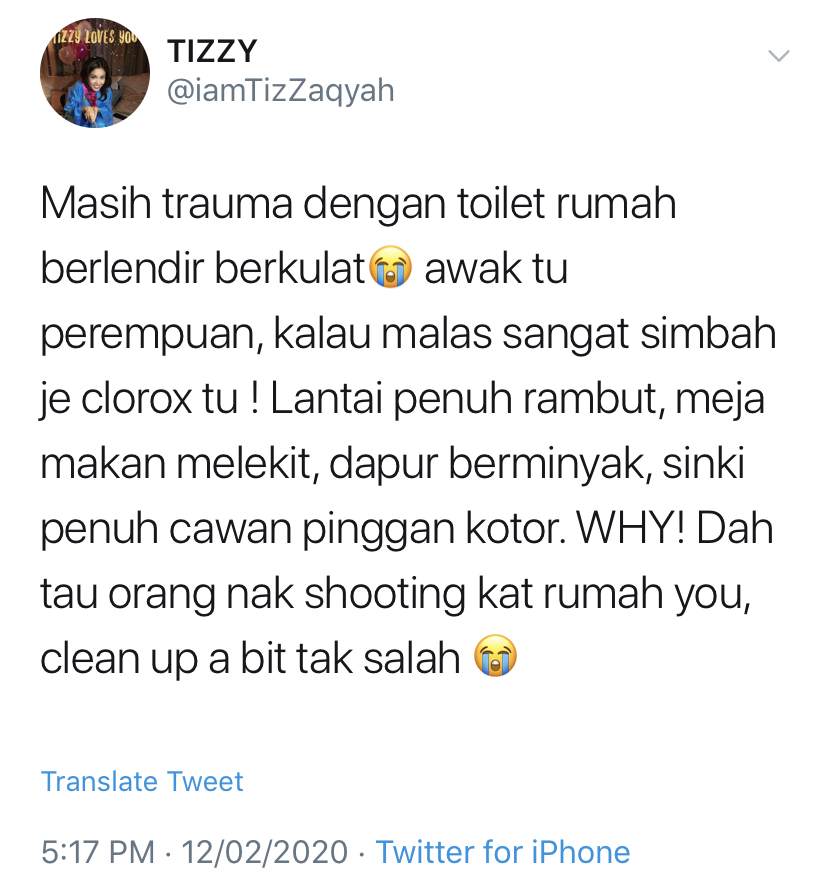 "Serious laaaaa. I tak boleh bayang betul. Cemana dia boleh duduk rumah macam tu.