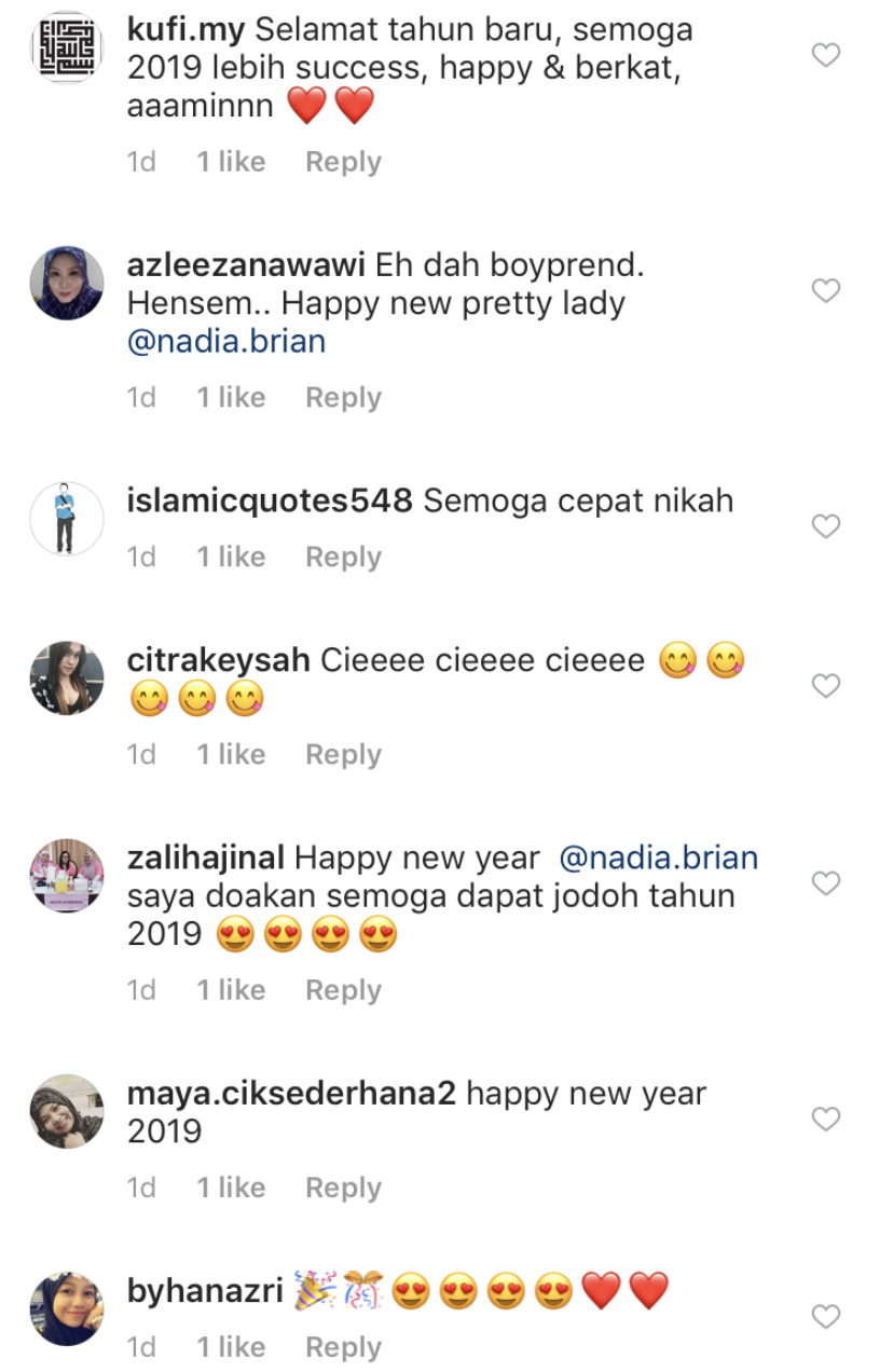 Jejaka itu juga meninggalkan komen di Instagram Nadia dan memanggilnya 'my love'.