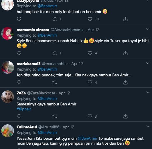 Namun, tidak kurang juga yang menganggap hanya Ben Amir saja yang kelihatan kacak jika berambut panjang.