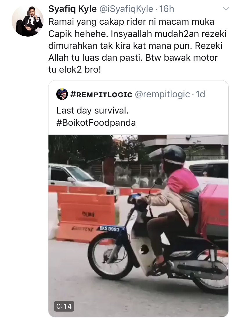 Menerusi laman Twitter, Syafiq memberi respon terhadap sebuah video yang dimuat naik di akaun @rempitlogic.