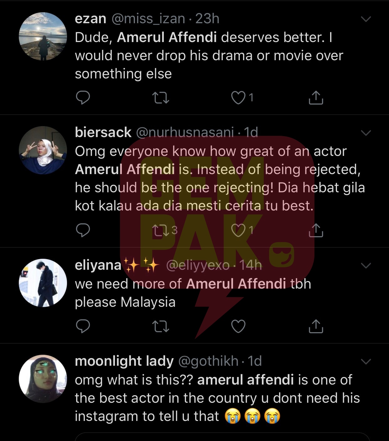 Keluhan Amerul itu mendapat perhatian beberapa rakan selebriti antaranya Sharifah Amani dan Bront Palarae.