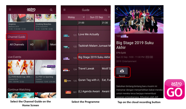 Pasti ramai yang mahu merekod dan menyimpan rancangan kegemaran yang ditonton di telefon pintar masing-masing menerusi aplikasi Astro GO.