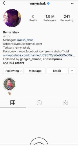 Pelakon popular Remy Ishak telah memadam semua foto di akaun Instagram miliknya.