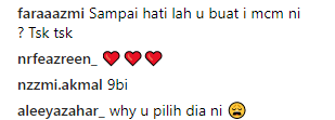 Menerusi ruangan komen, rata-rata peminatnya meluahkan rasa cemburu dan tidak dapat menerima kenyataan pelakon pujaan mereka sudah dimiliki.