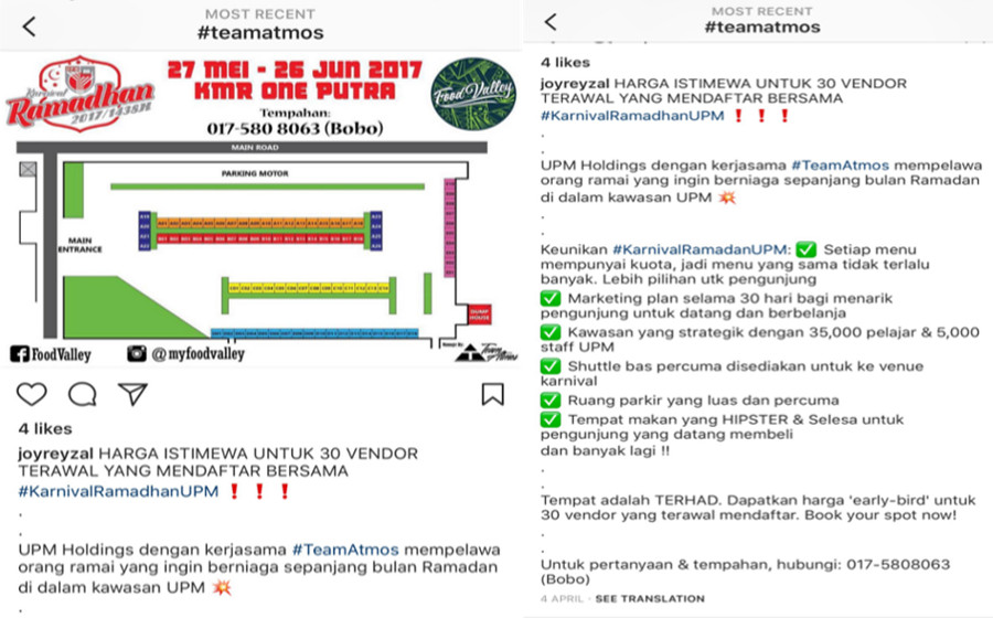 Bukan itu sahaja malah menerusi promosi mereka, pihak penganjur turut menyebut selain bazaar, pelbagai program menarik akan diadakan sepanjang ‘Karnival Ramadan UPM’ seperti Pesta Durian, Talk-Santai Rohani, Berbuka Puasa bersama Selebriti Tanah Air dan banyak lagi.