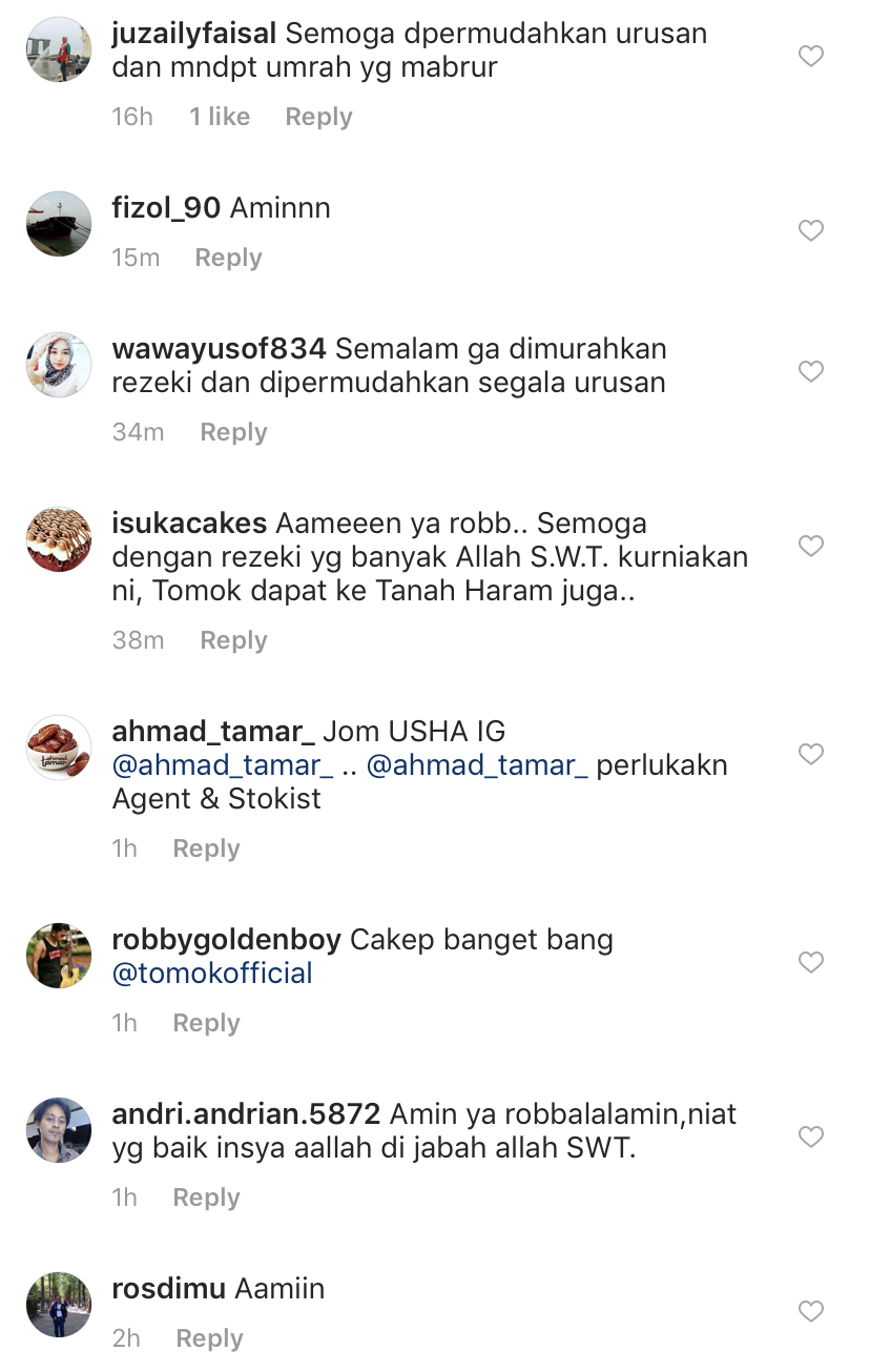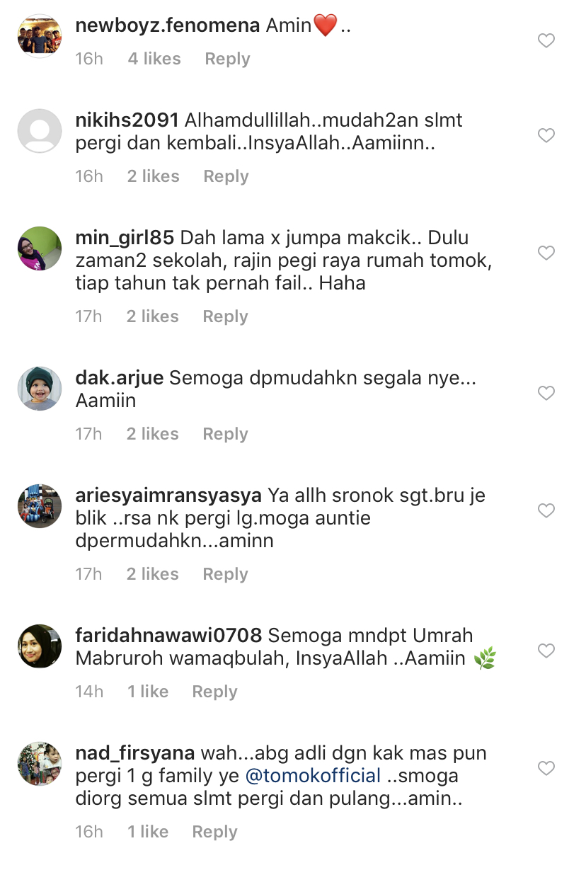 Tomok juga memohon kepada pengikutnya agar mendoakan semoga dia turut sama mendapat peluang untuk menjejakkan kaki ke tanah suci.