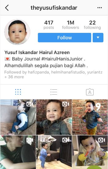 Yusuf yang kini berusia sembilan bulan sudah memiliki pengikut laman sosial Instagram seramai 1 juta.