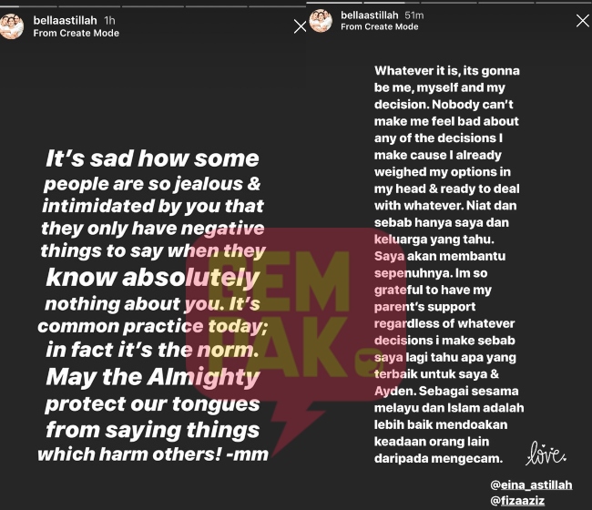 Tegas Bella keputusan yang diambil itu sudah diambil kira dari segi baik dan buruknya.