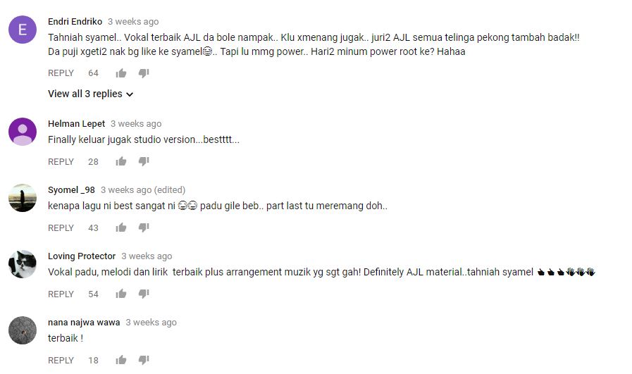 Rata-rata peminat yang meninggalkan komen pada video lirik tersebut berpendapat, single terbaru Syamel itu membuatkan bulu roma mereka meremang.