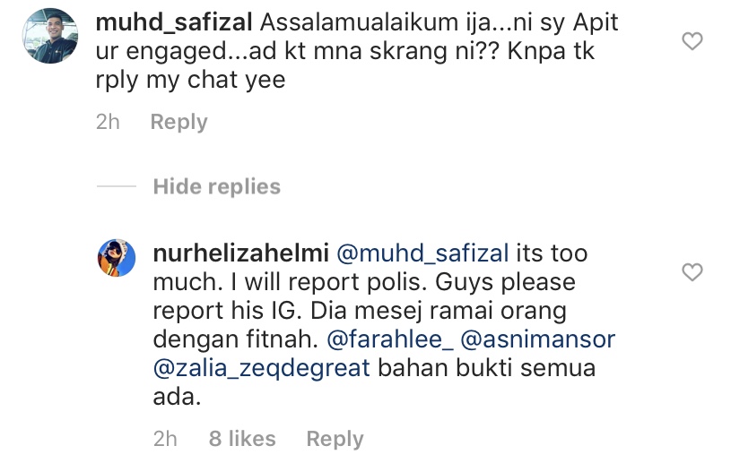 Rata-rata pengikut Heliza turut tidak berpuas hati dengan individu tersebut malah membuat laporan kepada pihak IG.