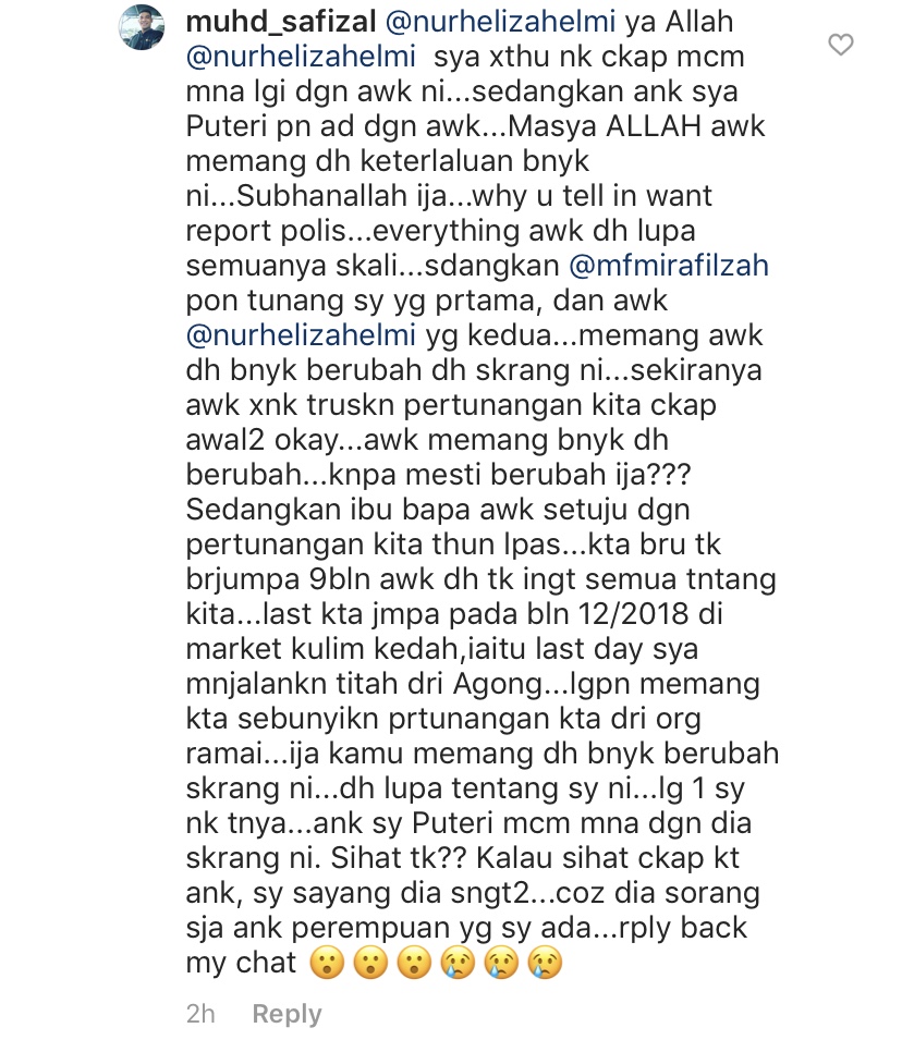 Namun, apa yang lebih menarik adalah kelihatan seorang netizen memperkenalkan dirinya sebagai tunang kepada Heliza.