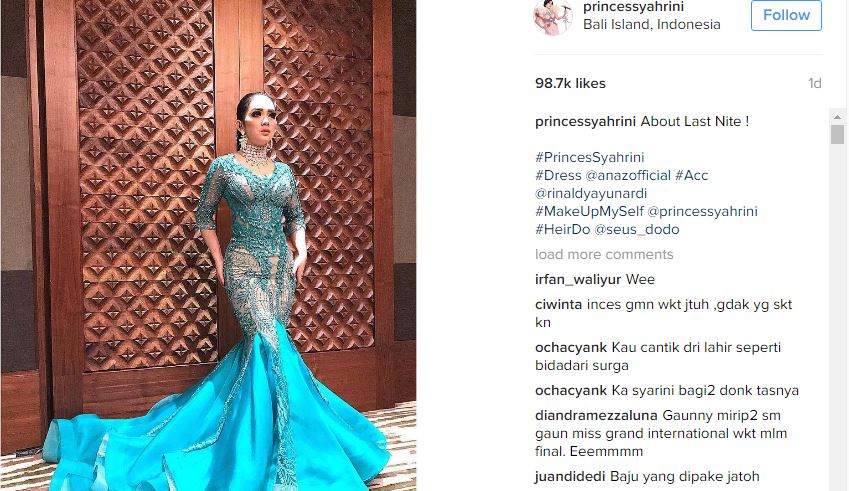 Ennabudiarsih: Lihat anda jatuh sewaktu memakai gaun ini, saya ketawa. Rasa lucu tapi semangat kakak untuk terus berjalan buat saya kagum. I Love you @princessyahrini