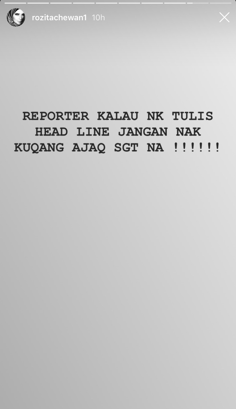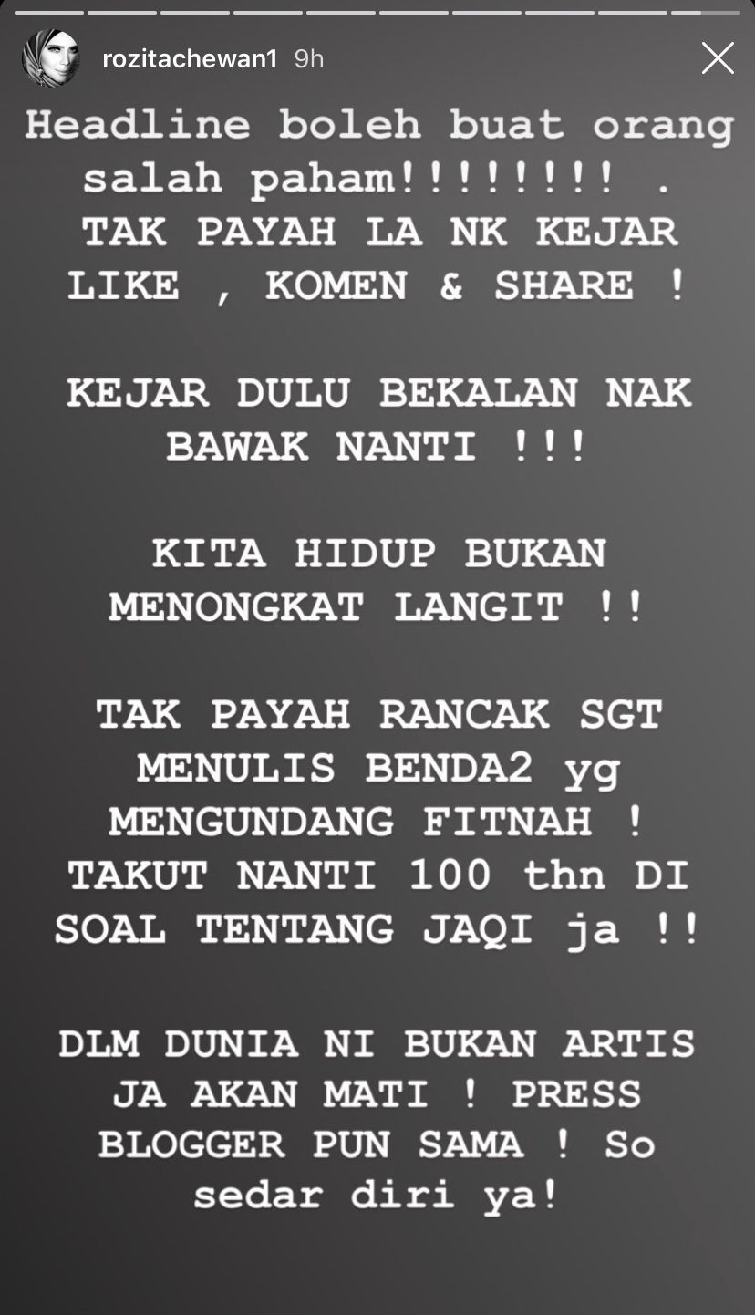 "Reporter kalau nak tulis headline jangan nak kurang ajar sangat na! Headline boleh buat orang salah faham! Tak payah la nak kejar like, komen dan share!" tulisnya.