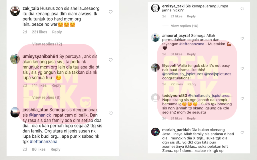 Biarpun Sheila tidak menyebut sebarang nama, ada pengikut laman Instagram mula mengaitkan Janna dengan kapsyen tersebut.