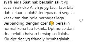 “Waktu czer dulu... Alhamdulillah tak lah susah mana pun nak jaga dan maintain. Cuma nak tahu fasal proses bersalin normal,” tulisnya.