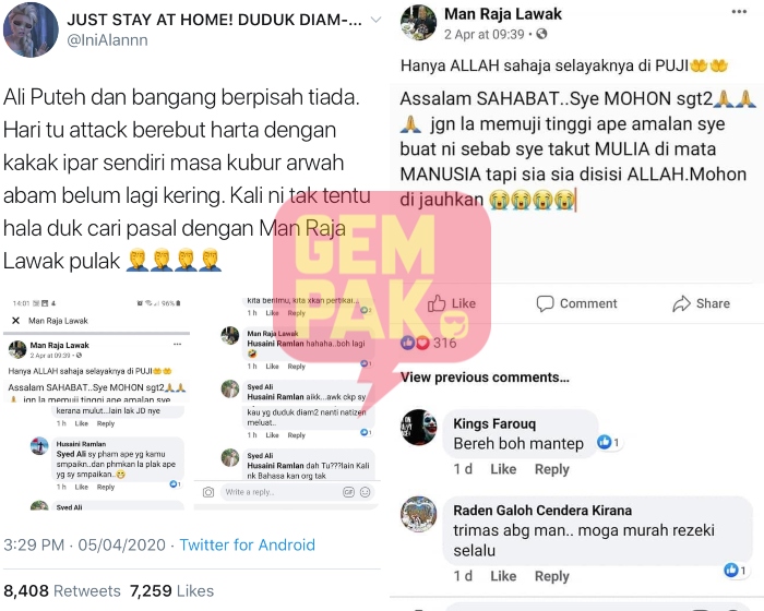 "Kali ni tak tentu hala duk cari pasal dengan Man Raja Lawak pulak," tulisnya di sebuah entri.