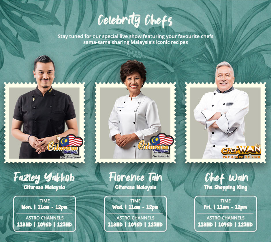 Pelanggan juga boleh menikmati program khas oleh chef-chef selebriti kegemaran rakyat Malaysia seperti Datuk Fazley Yakkob, Florence Tan dan Datuk Chef Wan, di mana mereka berkongsi resipi ikonik Malaysia.