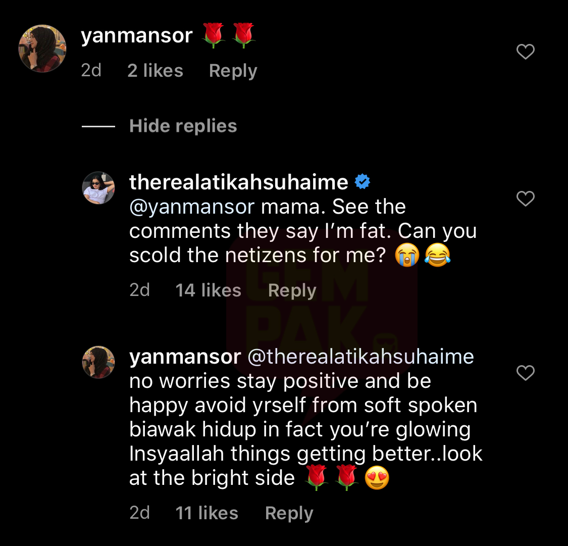 Dalam pada itu, ibu Atikah, Yan Mansor turut memberikan respon terhadap komen dan kritikan netizen.