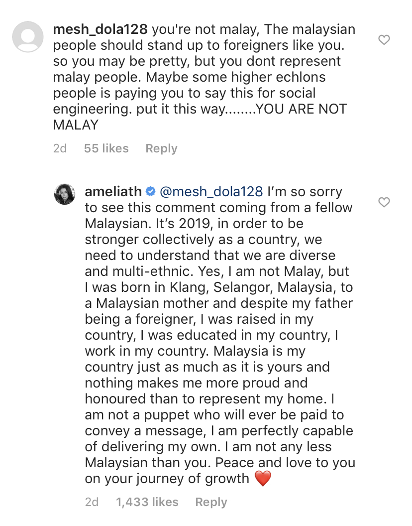 Namun begitu, terdapat segelintir pengikut yang tidak berpuas hati kerana Amelia bukan daripada keturunan Melayu.