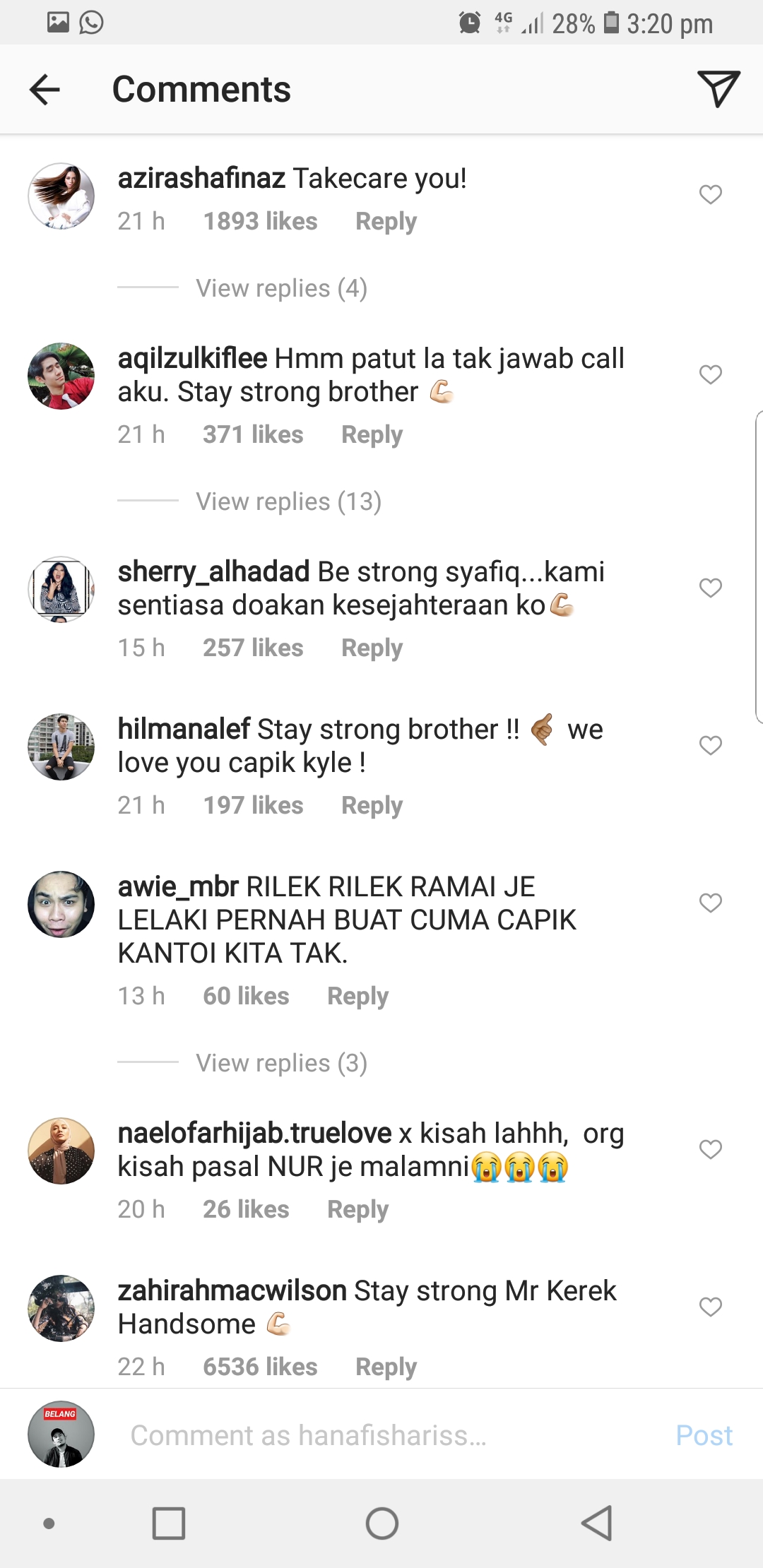Selain bersimpati dengan nasib yang menimpa pelakon lelaki kacak itu, mereka turut mendoakan agar urusan Syafiq dipermudahkan.