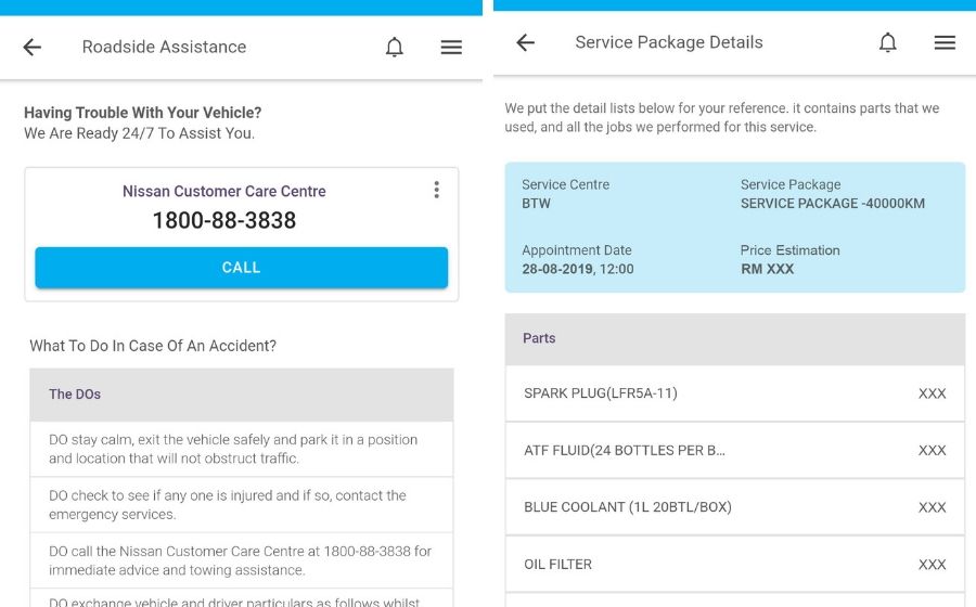 - Bantuan tepi jalan yang mudah – akses ke atas bantuan kecemasan tepi jalan dan pusat panggilan 24-jam untuk mendapatkan bantuan berkaitan kenderaan. Aplikasi ini juga menyediakan maklumat ‘Do’s & Don’ts’ sekiranya pengguna terlibat dalam kemalangan.