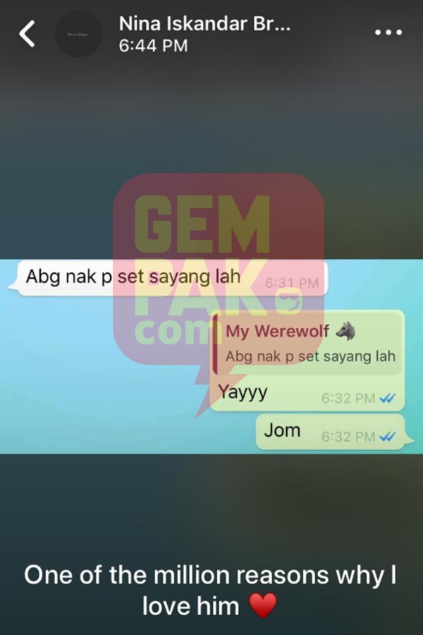 Selain itu, Nina turut memuat naik perbualannya dengan seseorang yang dipercayai bakal suaminya.