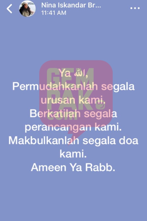Menerusi perkongsian di dalam medium yang sama, Nina turut berharap agar urusan dan perancangannya dipermudahkan.